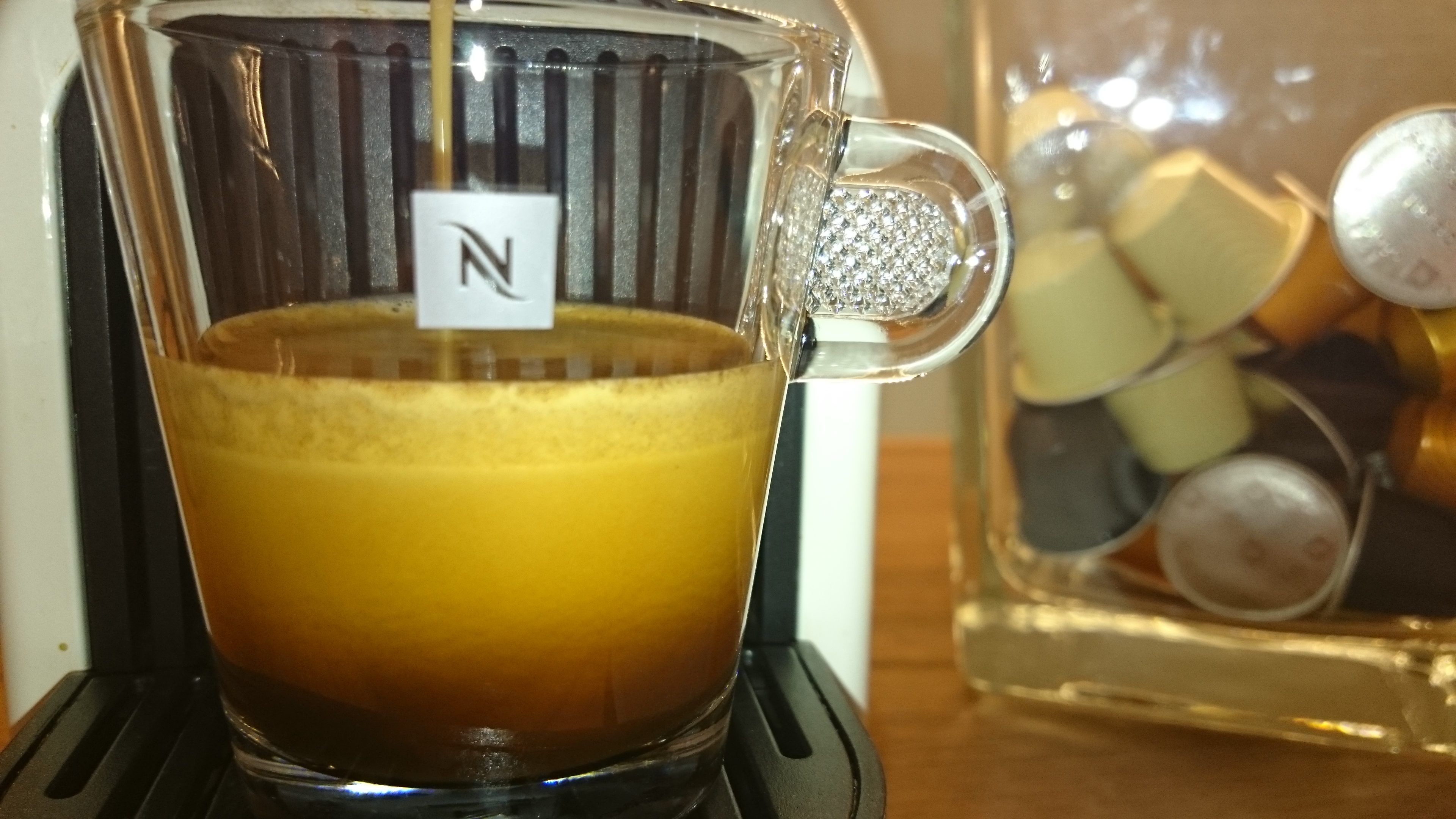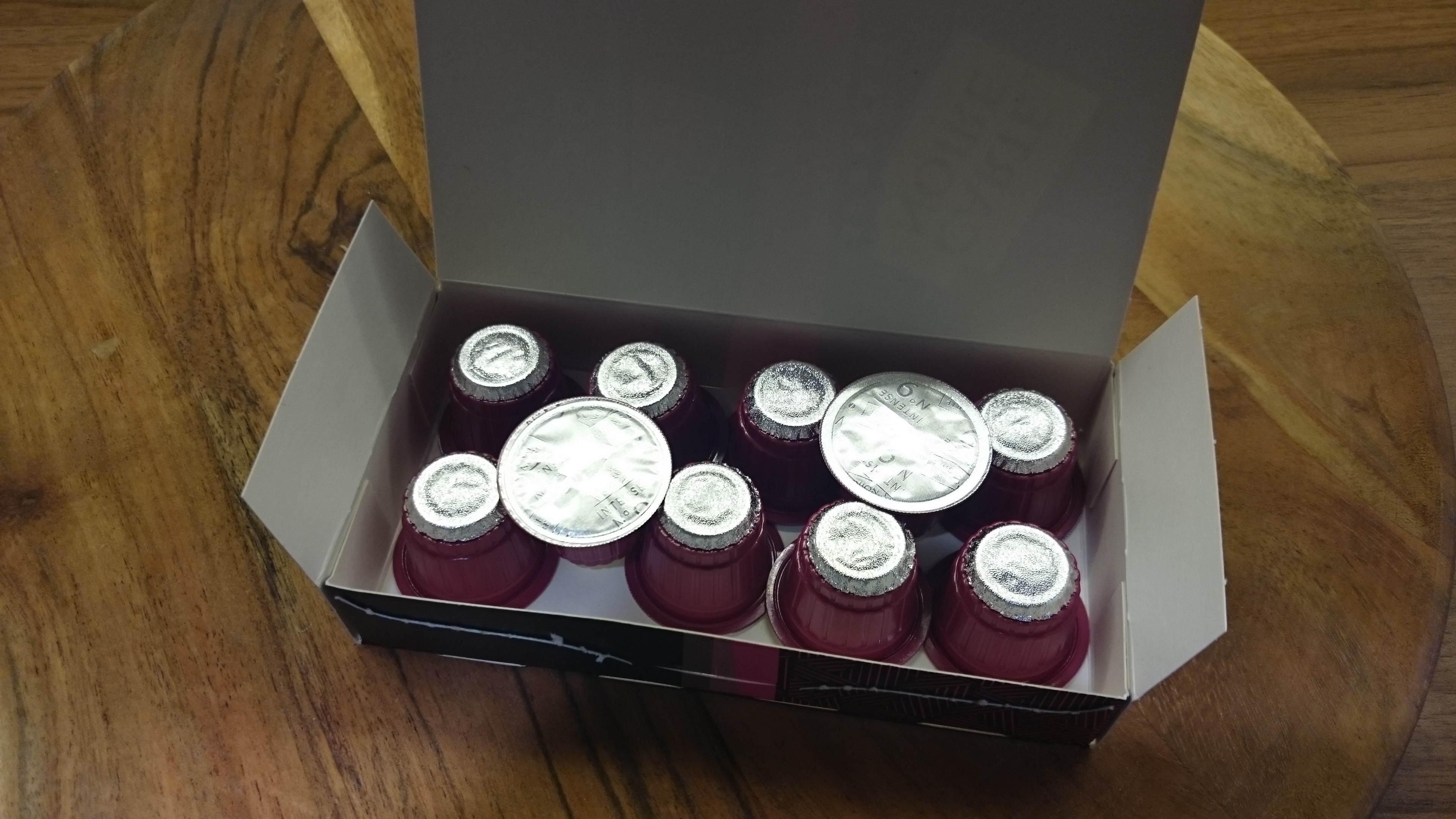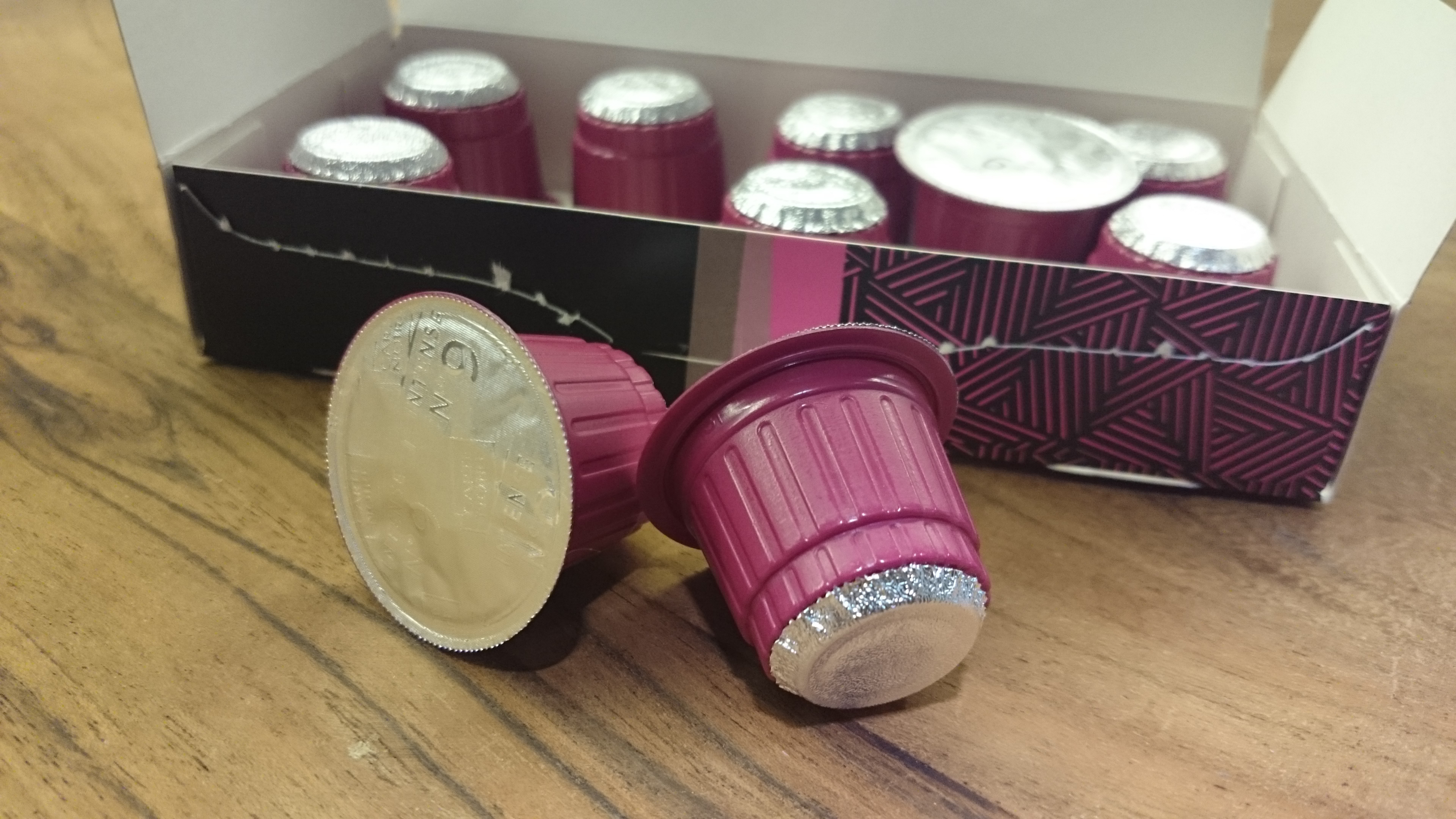 Balení je pěkné, obsauje nápisy ,,selection, exclusive” atd. a tak je po rozbalení velkým zklamáním vzhled samotných kapsulí. Plastovou obroučku ,,zdobí” z obou stran uzávěra z aluminia. Kapsle však pasuje zcela bez problémů a po spuštění nespressovače vydává káva opravdu nádhernou a intenzivní vůni. Všímám si také, že káva je spíš hnědá, než hnědočerná. Crema je intenzivní a zůstává na hladince dlouho po přípravě kávy.